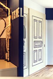 随所にサインペインティングを施し、