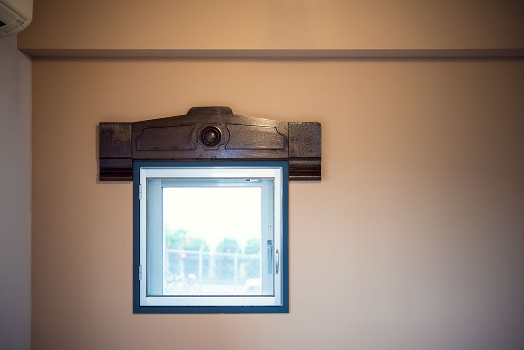 ハードな素材に対して各所の色や意匠で柔らかみをつけた仕様。