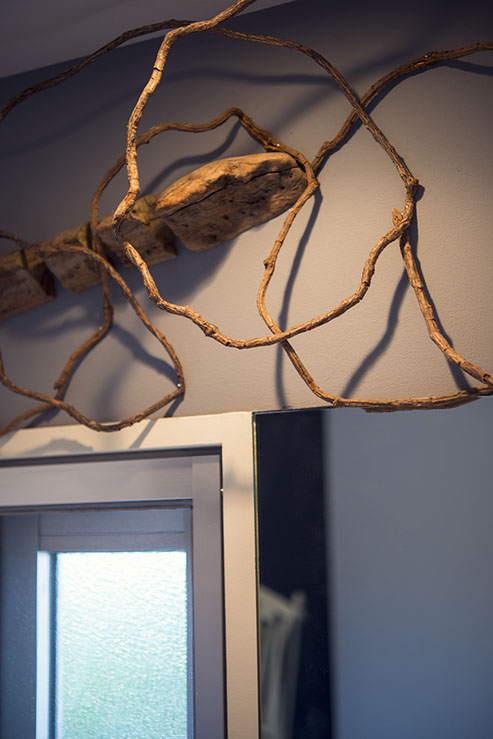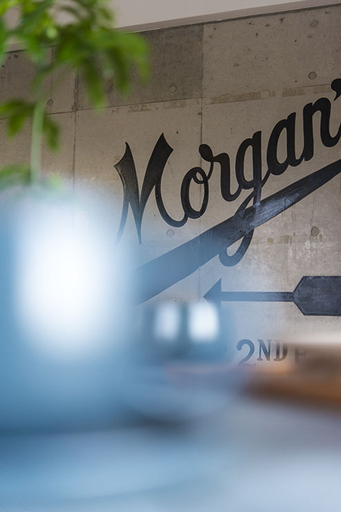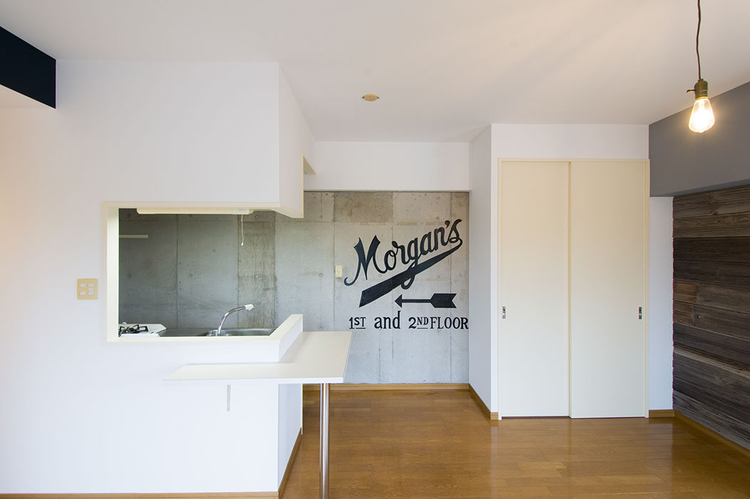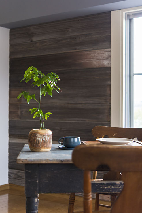 壁面にはアメリカにて納屋を解体して出たバーンウッドを一面に用い、