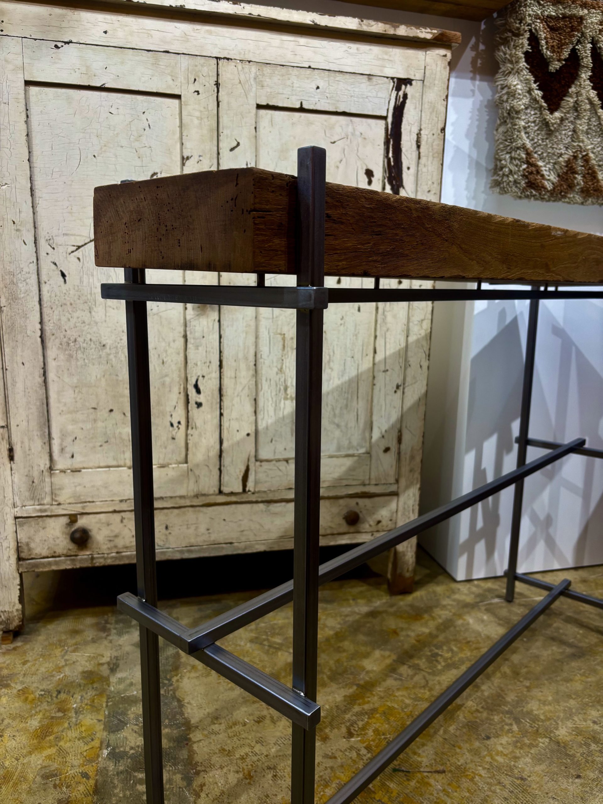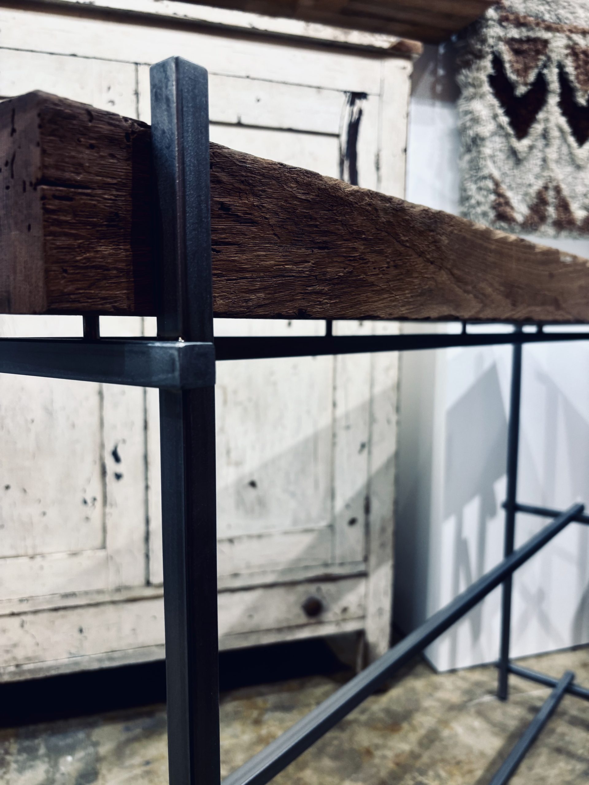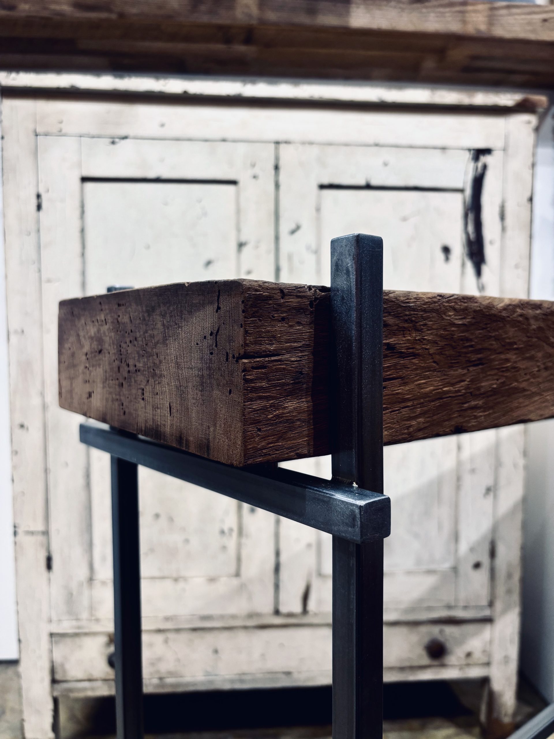 COLUMN 2026/2/1 BEAM. 肉厚のバーンビーム(梁材)を用いたプロダクト。 経年の素材の存在感や表情を損ねることなくシンプルにアイアンで脚部を製作。 脚先端部にはアジャスターも取付けているためある程度の不陸は対応可能。 店舗什器や空間の飾り台として。 一覧に戻る